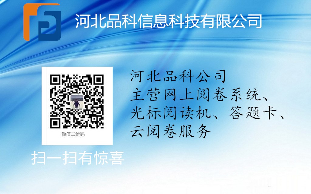 河北品科信息科技有限公司,是集生產(chǎn)、研發(fā)和銷售為一體的高科技企業(yè),目前主要從事考試光標(biāo)閱讀機(jī)、教學(xué)觸控一體機(jī)、網(wǎng)上閱卷系統(tǒng)和考試答題卡及其相關(guān)產(chǎn)品(機(jī)讀卡、軟件)的開(kāi)發(fā)生產(chǎn)和銷售。