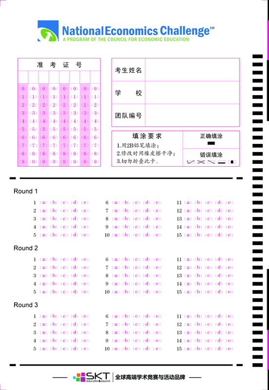 思珂特高端學術考試競賽答題卡